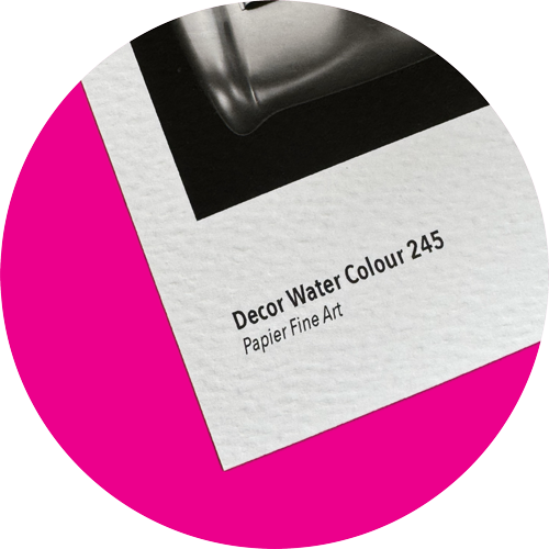 - Un papier Fine Art, sans acide, composé de fibres naturelles (coton, lin ou alpha-cellulose), garantissant stabilité et pureté.